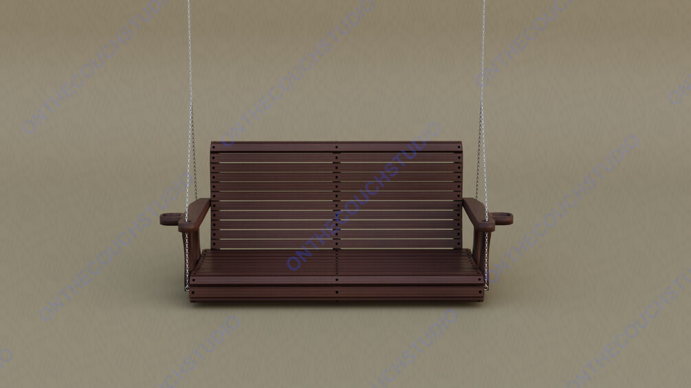 3D model render of a wooden swing. The swing features a classic slatted design with horizontal wooden planks for the seat and backrest, providing a sturdy yet comfortable structure. The wood is dark brown, with a smooth finish that highlights the grain and adds to the model’s realistic appearance. The swing is supported by metal chains on both sides, giving it a secure look while allowing it to hang freely. The armrests are integrated into the design, offering a cohesive and polished look. The background is a neutral beige, emphasizing the dark tones of the wood and the metallic details. This model is ideal for architectural visualizations, exterior design concepts, or tutorials on creating furniture models with both wood and metal elements. All working files, references, animations, textures, FBX, OBJ, STL and .blend file included in zip file. Specific Model statistics in pictures. If you would like something specific or need help with any model please just email onthecouchstudio@onthecouchstudio.com. Thank you.