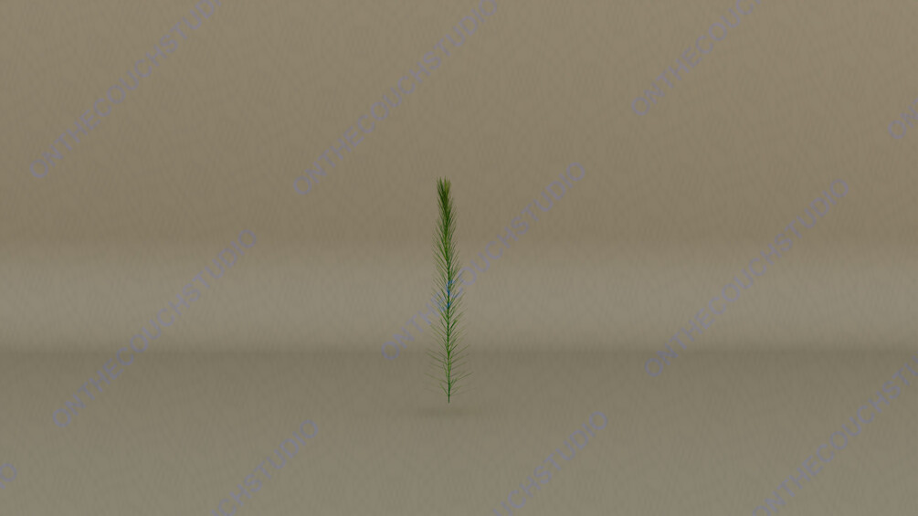 3D model of a single, slender plant stem with needle-like leaves arranged along its length. The plant appears to be upright, with a natural tapering shape as it extends upwards. The leaves are fine and pointed, resembling the structure of coniferous foliage. The overall appearance is minimalistic, with a focus on the delicate details of the leaves. This model is set against a plain beige background, allowing the fine details of the leaves and the vertical form of the plant to stand out. It would be suitable for use in scenes that require subtle greenery or as part of a more extensive arrangement of plants to add texture and depth to a virtual environment. Its simplicity makes it a versatile element for 3D interior or landscape designs. All working files, references, animations, textures, FBX, OBJ, STL and .blend file included in zip file. Specific Model statistics in pictures. If you would like something specific or need help with any model please just email onthecouchstudio@onthecouchstudio.com. Thank you.