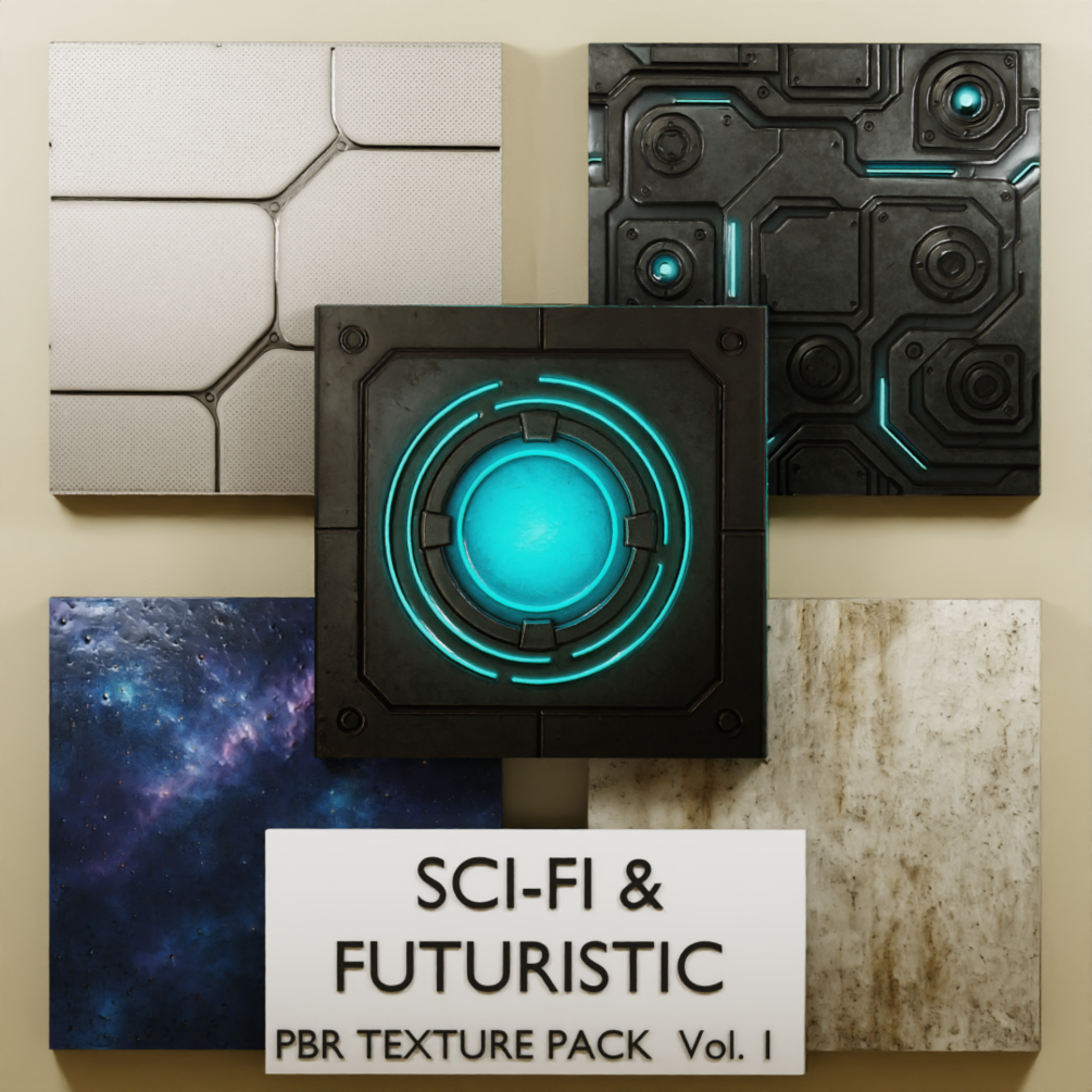 The Sci-Fi & Futuristic PBR Texture Pack includes 25 high-quality materials designed for use in games, films, architectural visuals, and 3D projects of all kinds.