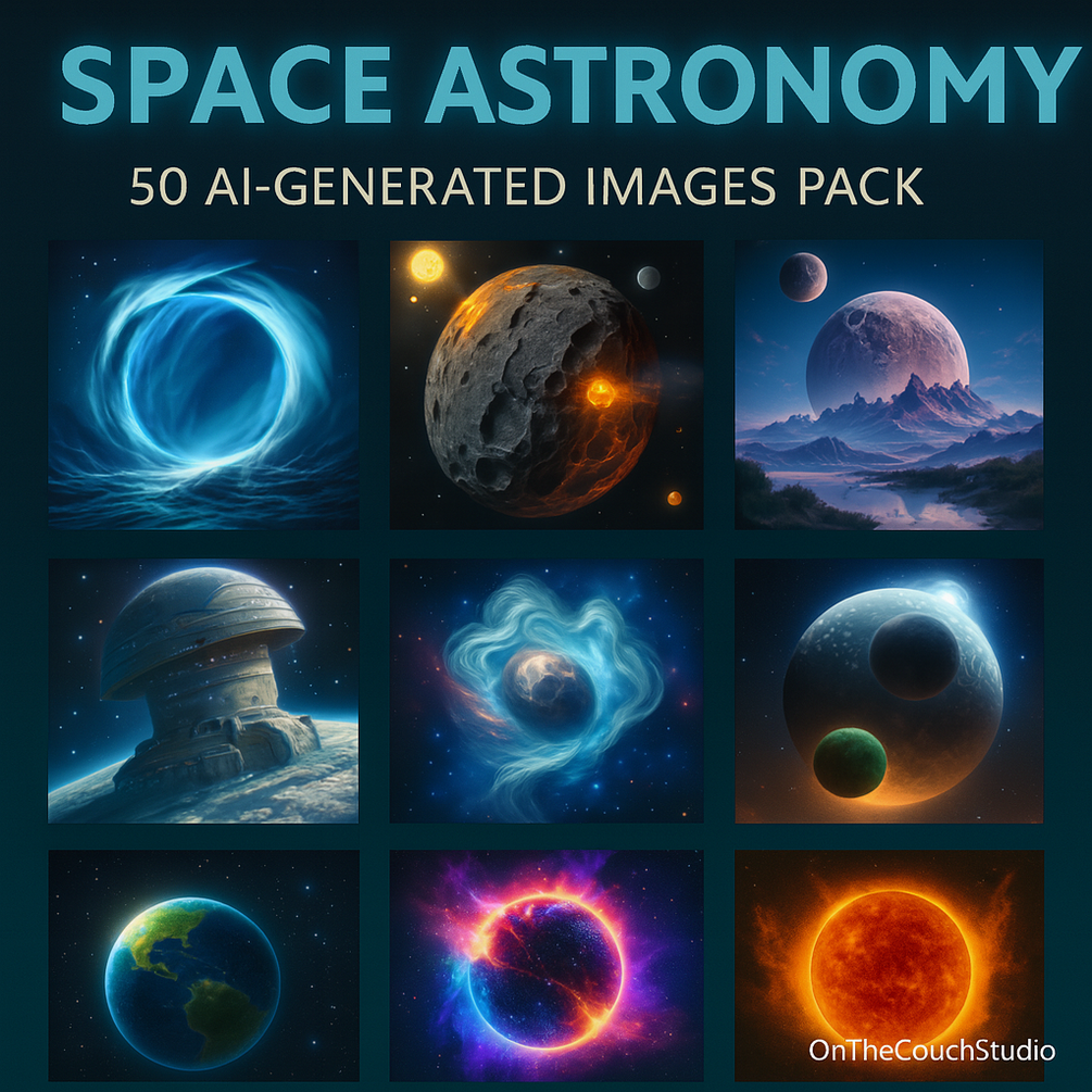 The Space-Astronomy AI Image Pack includes 50 high-resolution, royalty-free images generated with artistic precision. Perfect for game devs, designers, and content creators looking to enhance their visual projects.